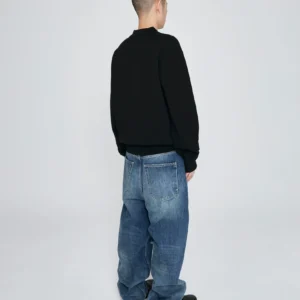 Knit Zip Up Polo Cardigan Black